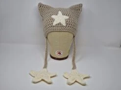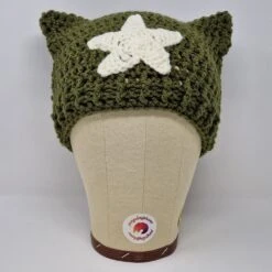 Handmade Crochet Cat Hat, Cat Ear Beanie, Cat Ear Hat In Khaki With Choice Of Star Or Skull