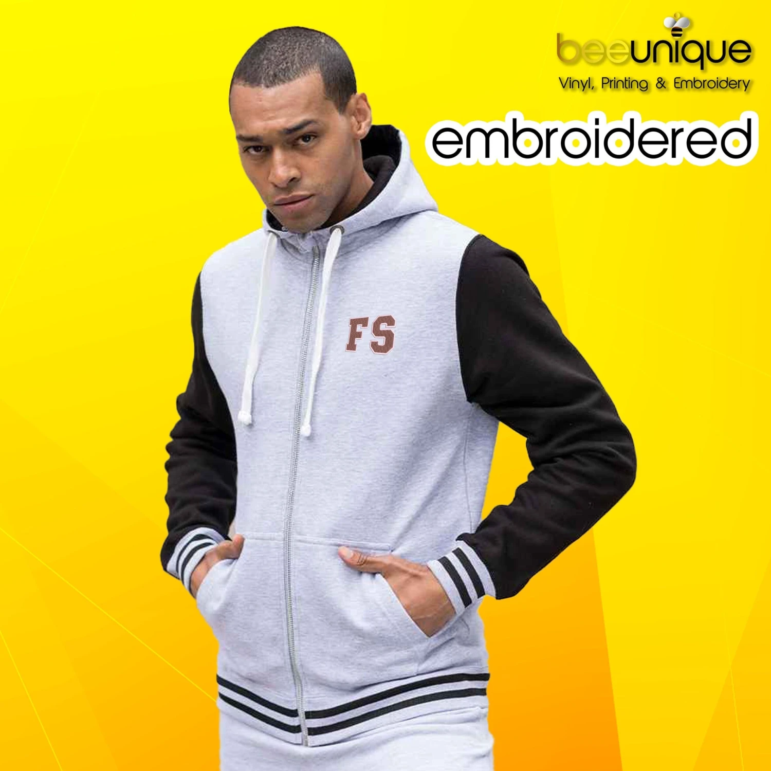 Adult Personalised Embroidered Unisex Urban College Varsity Zip Hoodie – Letterman Style Zip Hoodie – Zoodie
