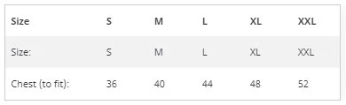 Garment sizes are approximate and for guidance only.