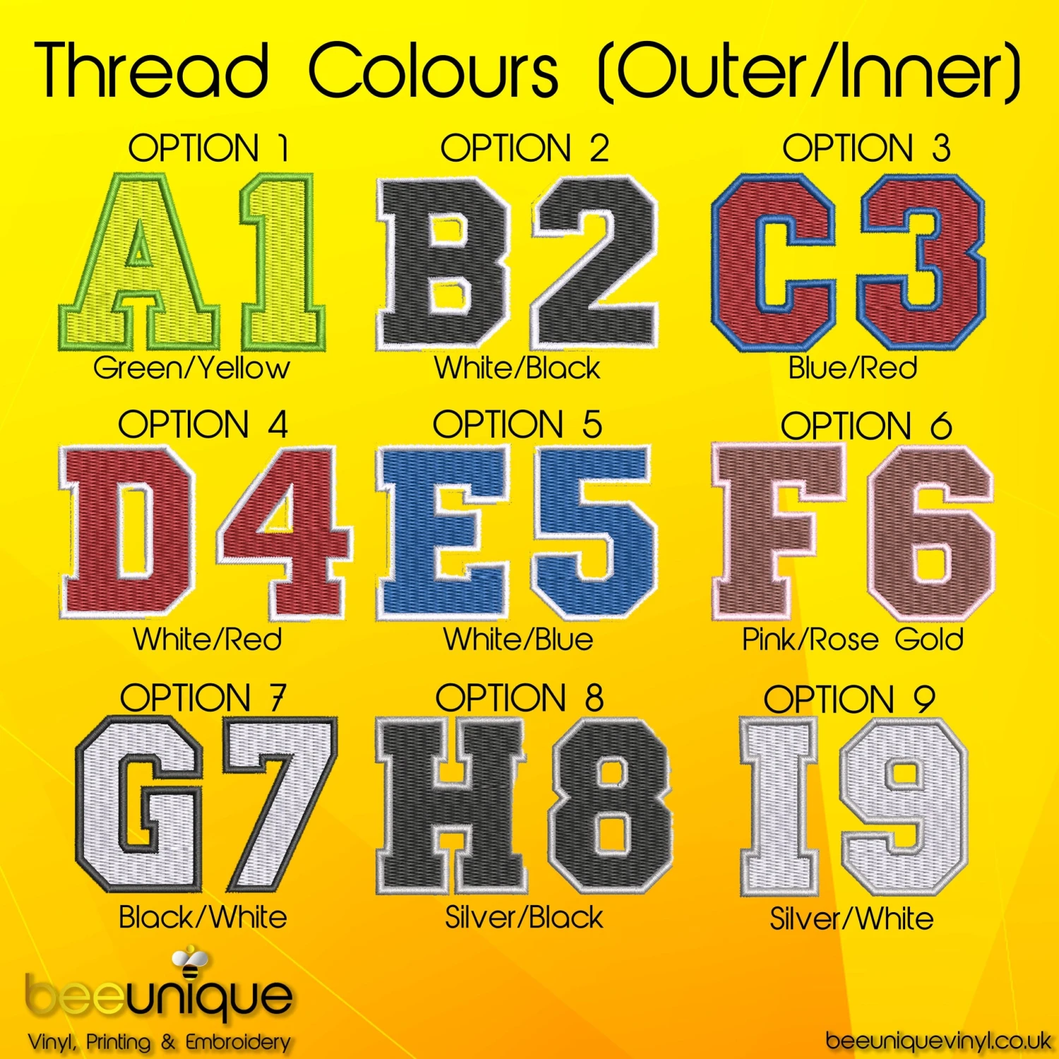 Let us know 1-3 Characters you want in the Personalisation box and also the thread colour – if you do no select a thread colour we will select one for you