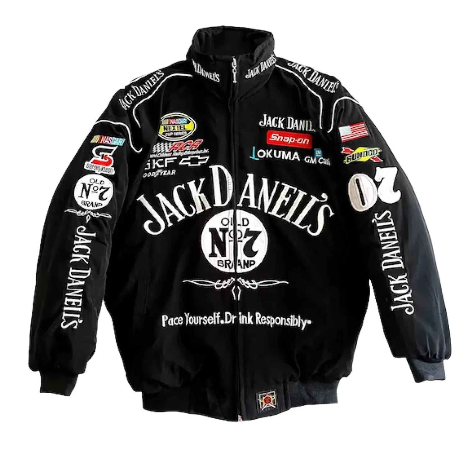 Jack Daniels Chrysler NASCAR Racing Jacket features a timeless design that will fit anyone looking for a stylish and comfortable bomber jacket.